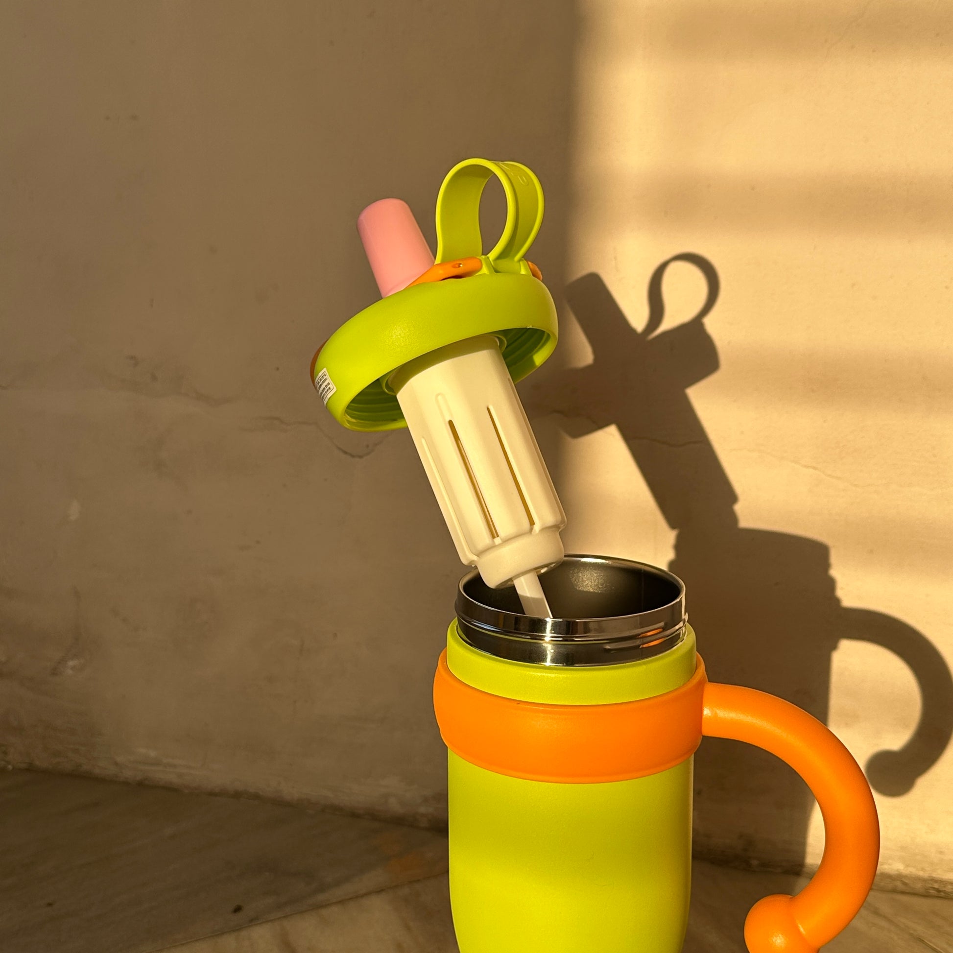 This insulated steel jumbo sipper keeps your drinks hot or cold for upto 8 hours. The built-in filter lets you sip juices, detox water, or infused drinks without the mess. Use it as a bottle or a sipper, however your day flows. Big on capacity, easy on the hands, and stylish enough to carry everywhere, this one actually makes drinking water feel effortless.